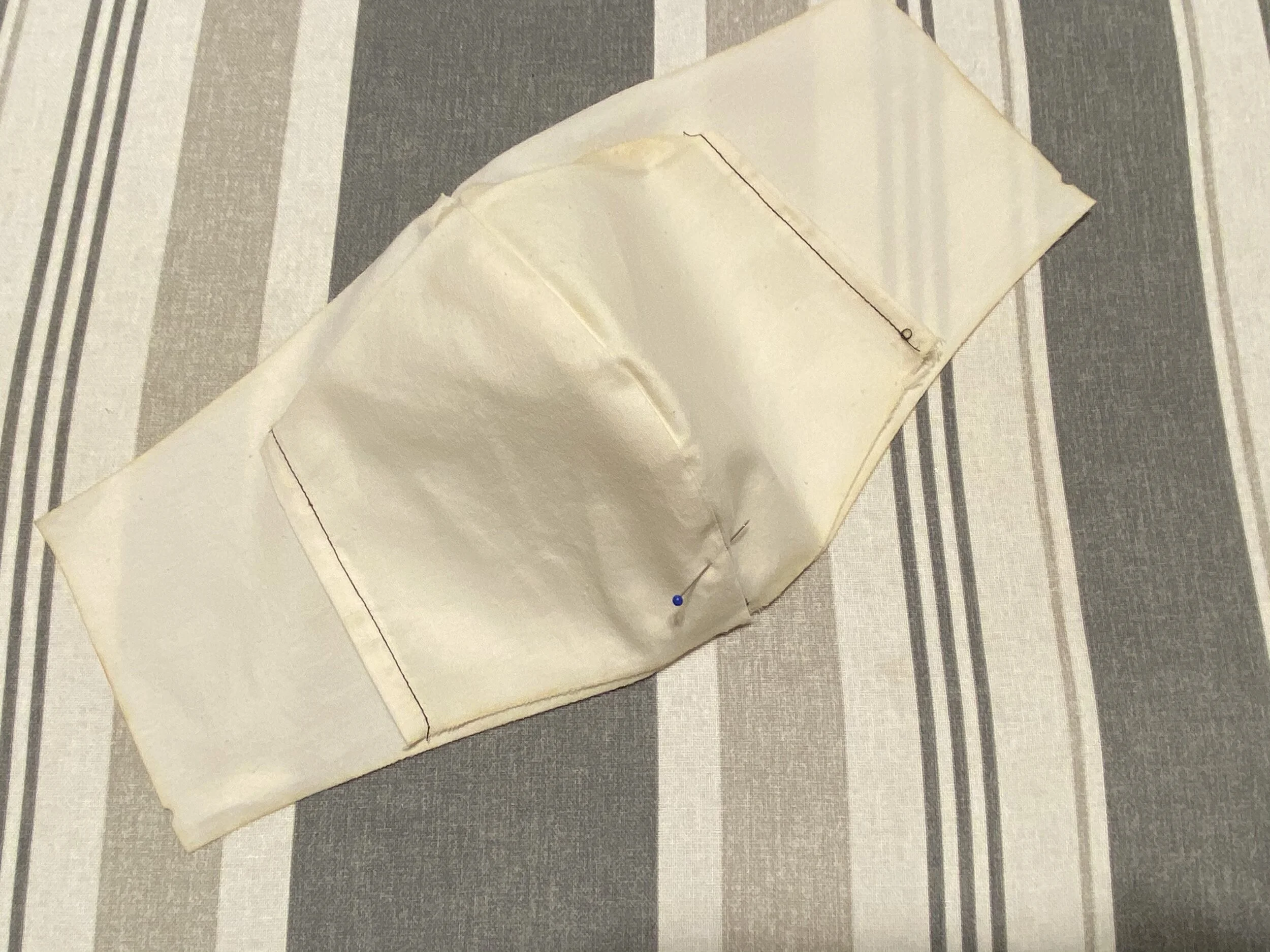 Iron the seam carefully. You want to be sure none of the white liner is showing from the outside: try to get this as close to perfect as you can: you’re going to lock in the alignment you get now in the next sewing step.